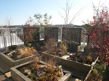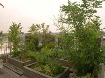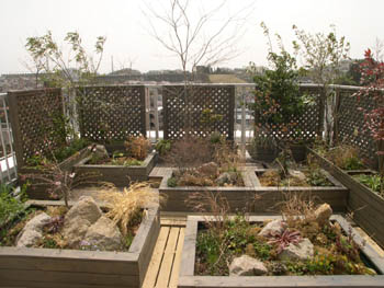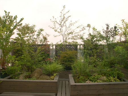 今年の夏、7月の様子です。 冬や早春とはうって変わって、さまざまな野草や雑木たちがよく育ち、 マンションのルーフバルコニーとは思えない、まるで山の中にいるような景色を作ってくれています。 こちらでは、樹木が約20種以上、山野草は約100種類ほど植栽しました。 混植することで、それぞれの植物が殖えすぎないようにバランスをとっているようです。 今年は、梅雨が長かったこともあり、害虫の発生が多いですが 風通しがよいせいか、こちらでは害虫の被害もほぼありませんでした。 これから、年を重ねることで、ますます自然な景色となっていくのが楽しみなお庭です。 |